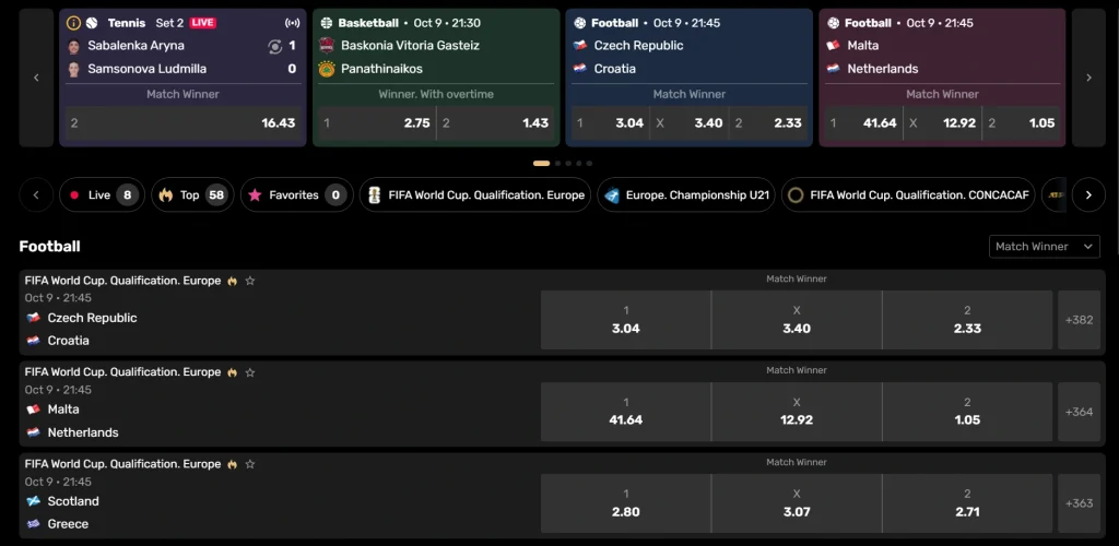 - Básquet: Apuestas en la NBA, la Euroliga y las ligas nacionales más importantes.